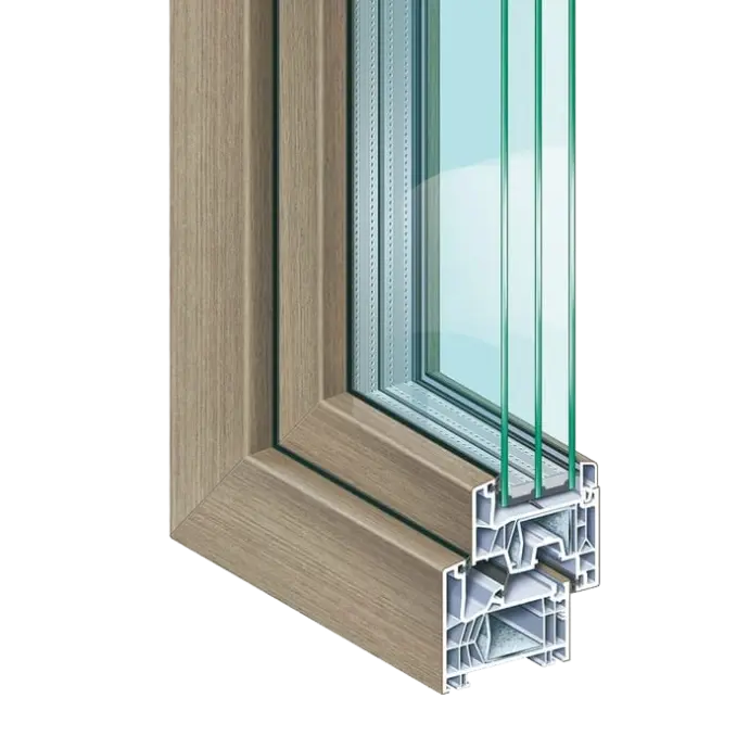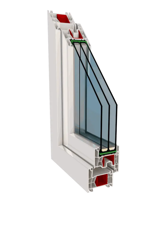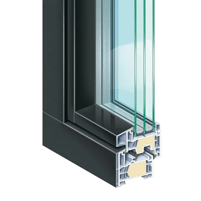 - Excellentes propriétés thermiques : Profil composé de 6 chambres d'isolation Uf=1.0 W/m2k confr. En 12412-2 et un joint central.
